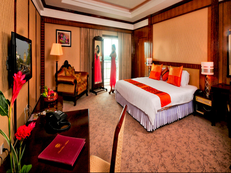 A spacious and luxurious room for the discerning guests. At 50 sq. meter, each of our Deluxe room with high ceiling boasts a king size bed and a private and personal balcony over-looking the majestic Mekong River and sunset. Each room is equipped with a jacuzzi complete with luxurious amenities, individually controlled centralized air-conditioning, IDD Calls with bathroom extensions and voice mail, in-room electronic safe, mini bar with coffee/tea making facilities, computer ports and high speed internet access for a comfortable and relaxing stay.